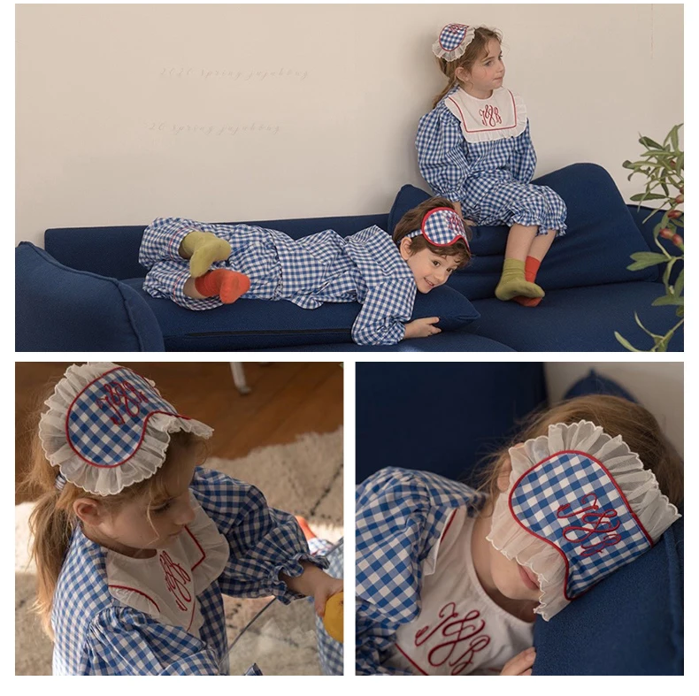 Детские пижамные комплекты с вышитыми буквами и повязкой на глаза. Винтажная детская одежда для сна, пижамный комплект для девочек и мальчиков. Детская одежда