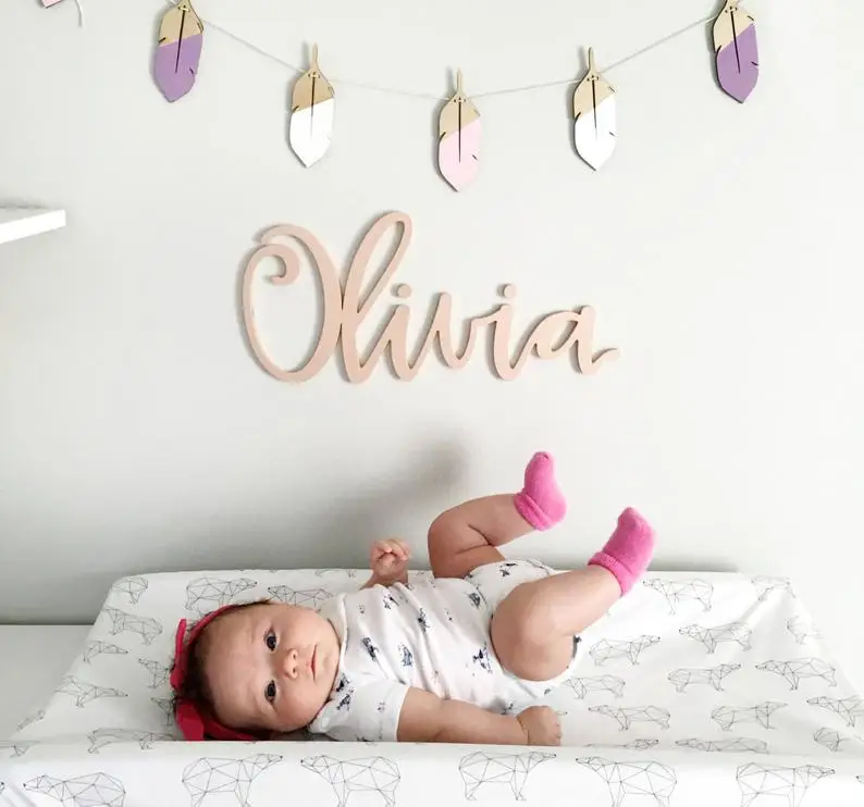 Именной знак для детской комнаты, деревянные буквы, персонализированное висячее имя для детской комнаты, подарок для будущей мамы, индивидуальный именной знак для детской комнаты