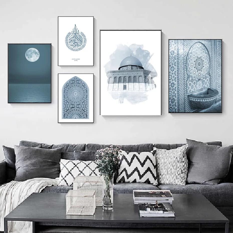 Современная Исламская синяя живопись, мечеть, марокканская архитектура, художественный холст, постер, пейзаж, живопись, гостиная, коридор, украшение