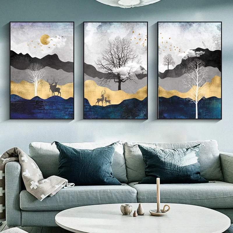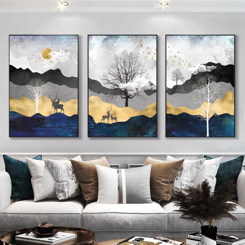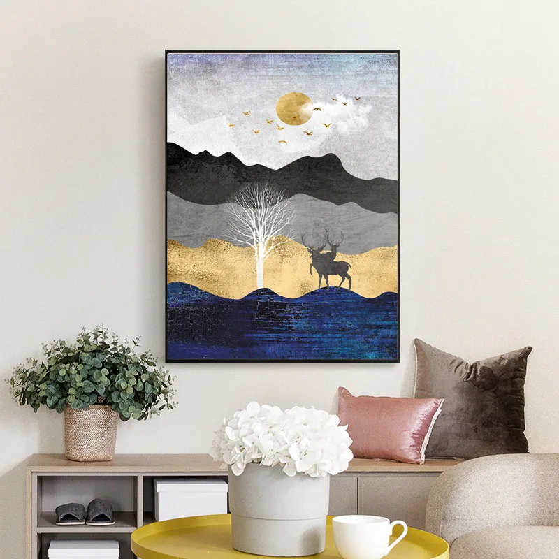 Скандинавский абстрактный свет роскошный пейзаж олень Живопись Домашнее украшение холст Пейзаж гостиная постеры и принты