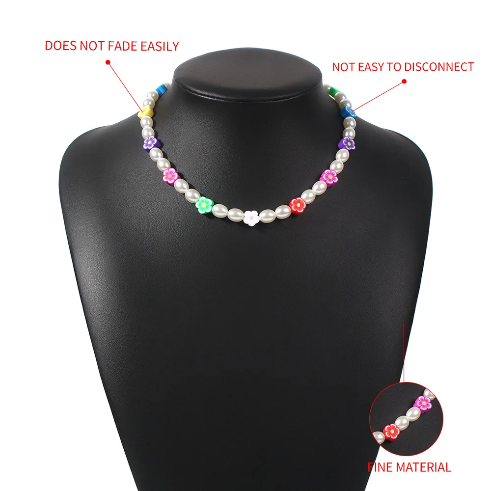 Женское Ожерелье DIEZI, разноцветное колье с искусственным жемчугом, корейский стиль, ожерелье с бусинами в форме цветов