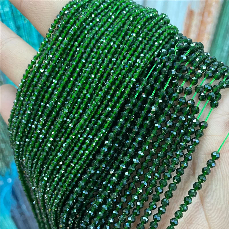 Бусины круглые с натуральным граненым зеленые самоцветы, размер 2 мм, 3 мм, для изготовления ювелирных изделий, ожерелий, браслетов, ножных браслетов сделай сам
