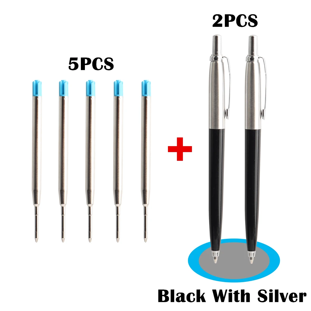 Ручка шариковая автоматическая, металлическая со стержнем, 2 + 5 шт