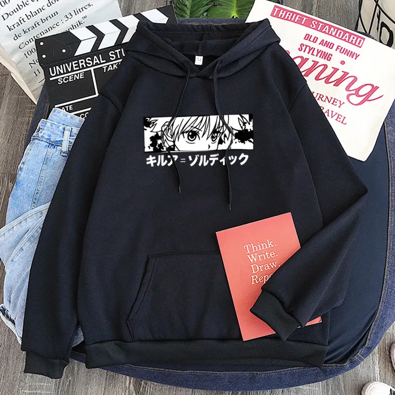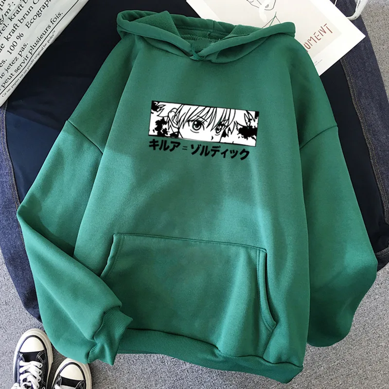 Темный Отдел Харадзюку Охотник X Охотник узор матч флис зима кенгуру карман Толстовка Повседневная одежда для любовников Demon Slayer
