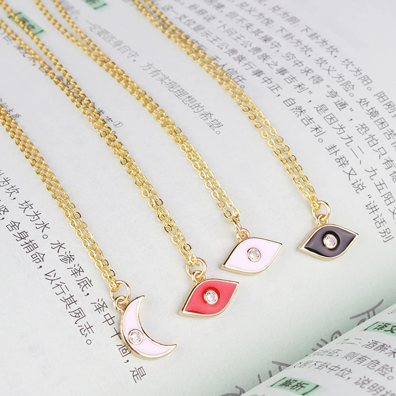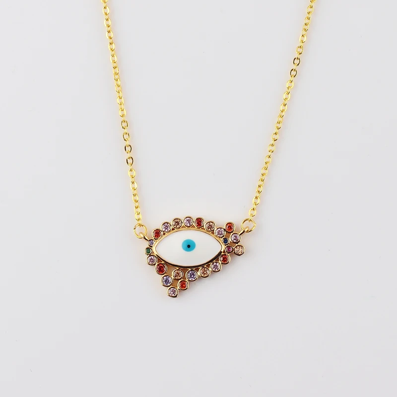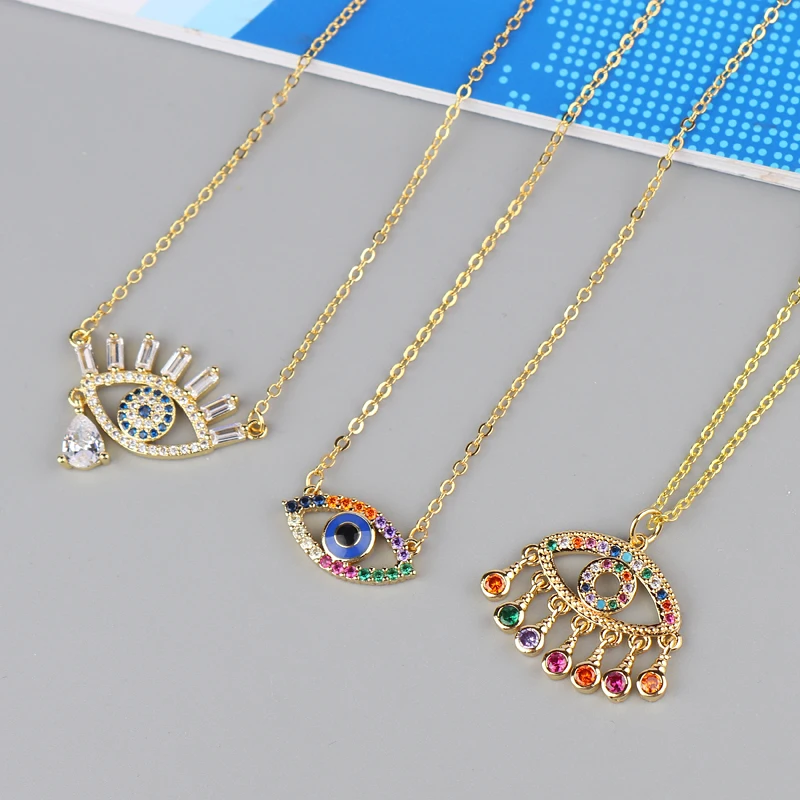 1PC Turkish Crystal Evil Eyes Pendant Necklace For Womens Jewelry Rainbow Gold Color Clavicle Chains Necklaces bijoux femme