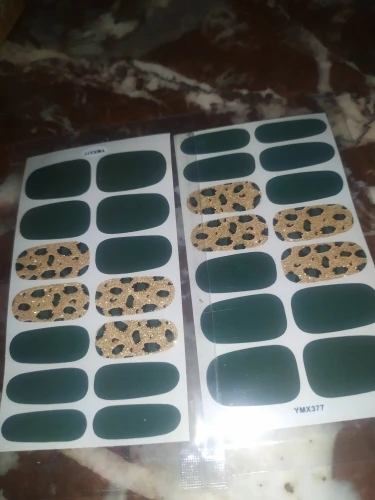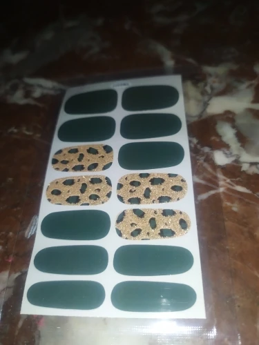 Цвет не совсем такой, как показано на рисунке, но все же довольно красивый. Я ношу наклейки Через полторы недели, и они отлично держатся. Прикрепленные изображения новых наклеек и как они сейчас. Кроме того, вы можете удалить их больше, если вы используете другую половину для другой руки, в случае ношения коротких ногтей, конечно. Это был первый раз, когда я использовал этот тип "эмали", и это было очень легко надеть. Я уже купил больше, я в восторге.