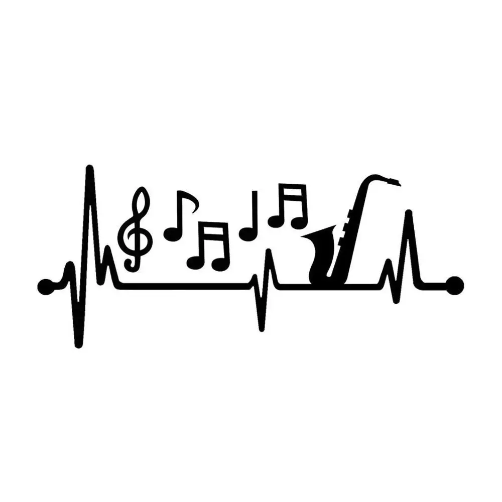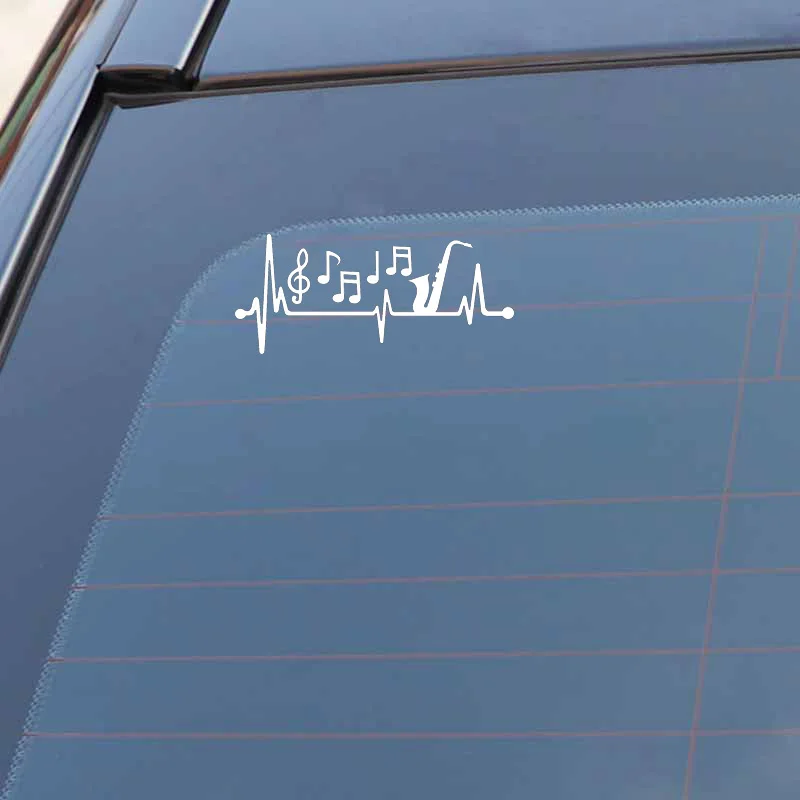 15 см * 6,5 см автомобильный стикер саксофон музыкальные ноты сердцебиение винил черный/серебристый наклейка C22-1016