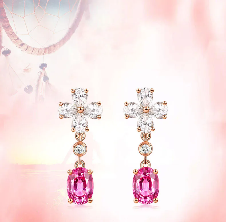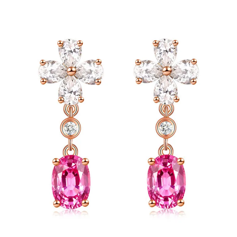Черный Ангел 2021 новые четыре листа клевера создает романтическую розовый турмалин драгоценный камень 925 Серебряные Висячие серьги для женщин Свадебные украшения