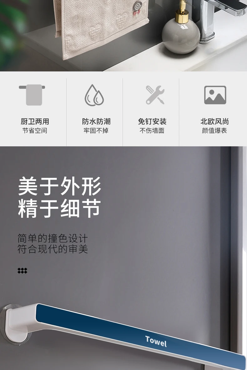 Вешалка для полотенец без перфорации, настенная подвесная Простая вешалка для полотенец, подвесное банное полотенце для ванной комнаты, однополюсная крючок, полка