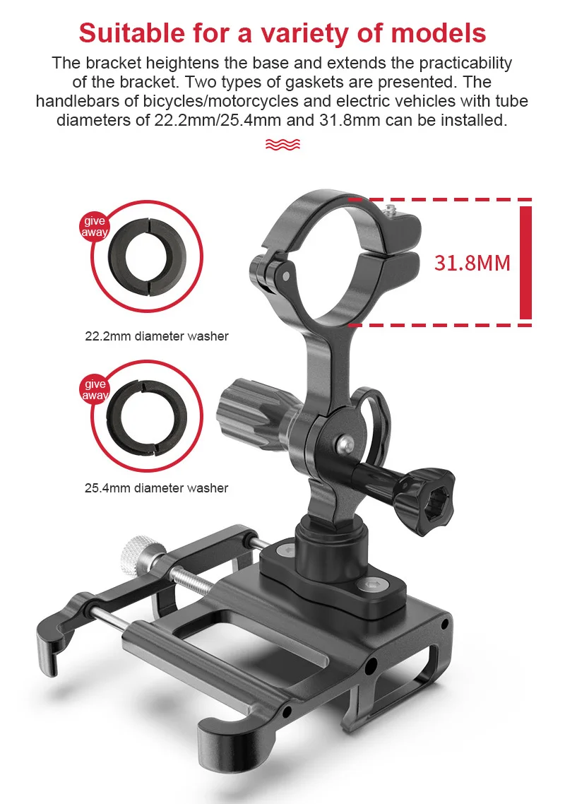 Корпус рамы из алюминиевого сплава, двойные крепежные ручки отказываются встряхивать, высокая совместимость не выбирает мобильный телефон модели, велосипеды, электрические