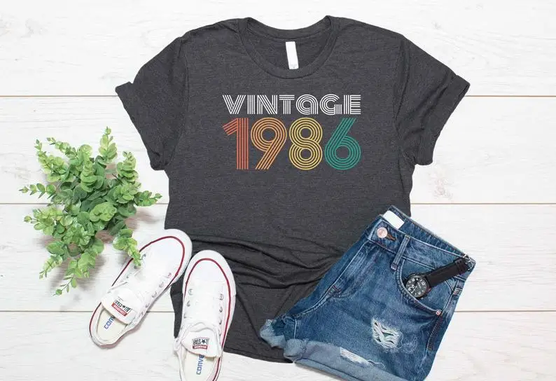 Футболка женская хлопковая, с забавным принтом, круглым вырезом и коротким рукавом, в винтажном стиле, подарок на 35-й день рождения, размера плюс, 1986