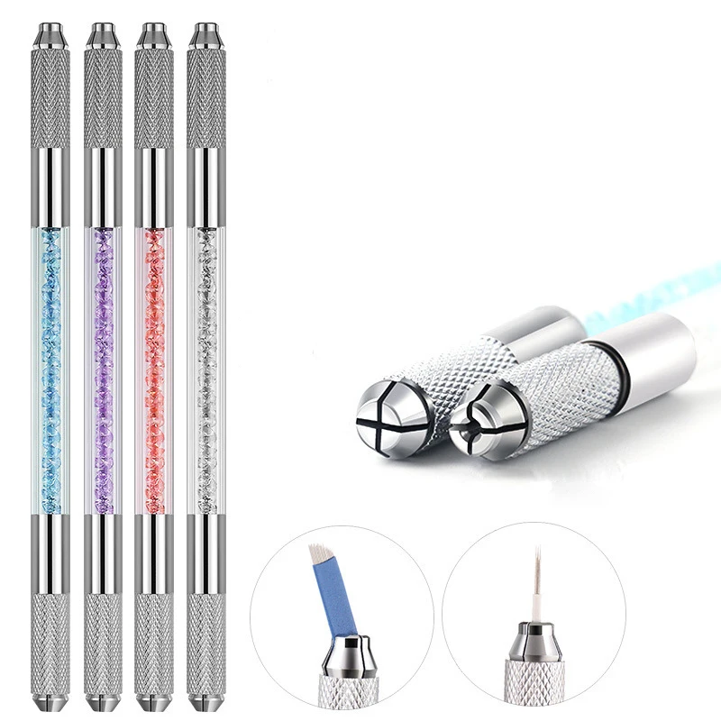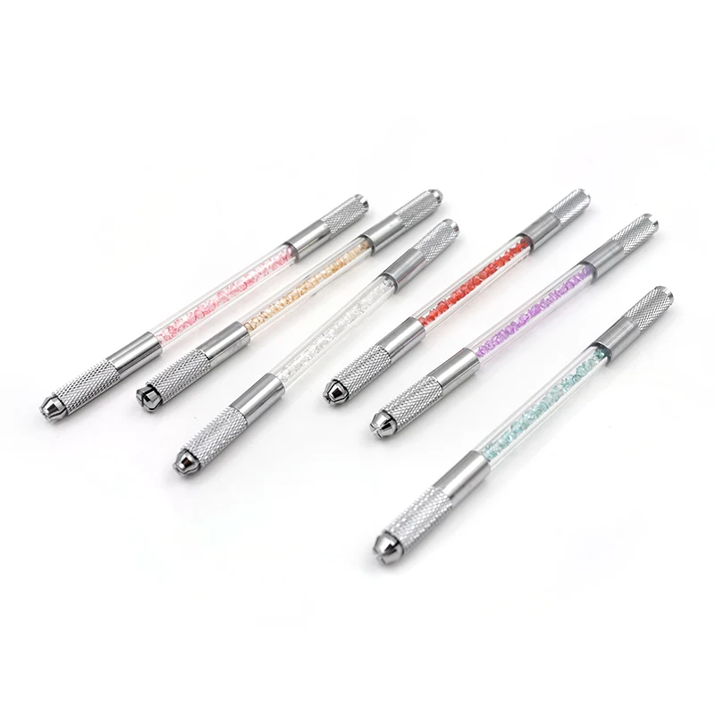 Ручная акриловая ручка для татуажа, многофункциональная, с двойной головкой, с перекрестным отверстием, Перманентная ручка для микроблейдинга, для бровей, инструменты для макияжа