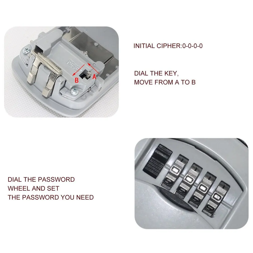Сейф для ключей, 4-значный комбинированный ящик для ключей с паролем, органайзер для хранения ключей, чехол, настенный замок для домашней безопасности, металлический ящик для ключей