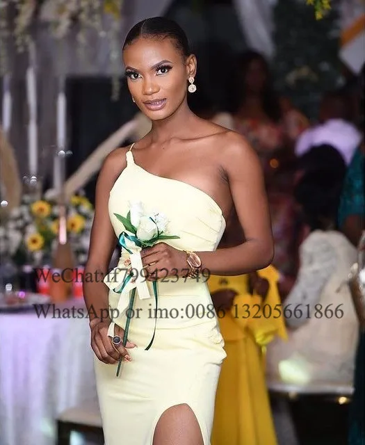 Светильник-желтое, платье подружки невесты из Африканской ткани, длинное, с открытым плечом, с разрезом, 2021