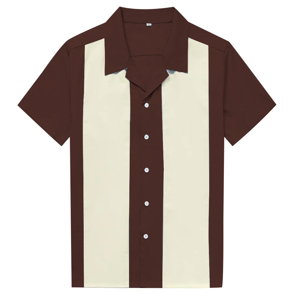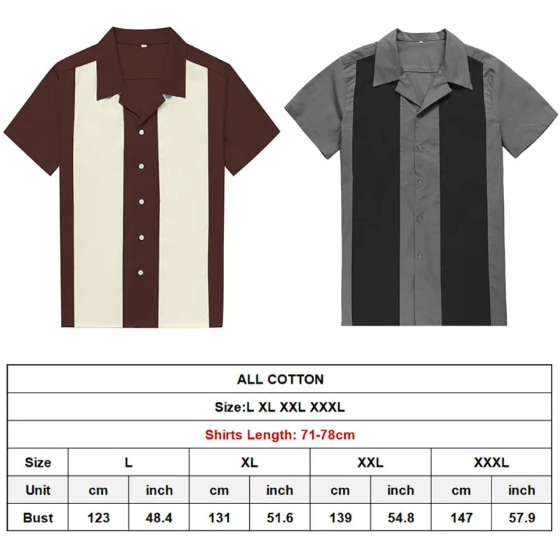 Новая мужская рубашка в Вертикальную Полоску, повседневная хлопковая рубашка на пуговицах с коротким рукавом в стиле ретро, мужские рубашки для боулингаИнформация о продукте