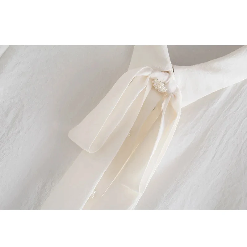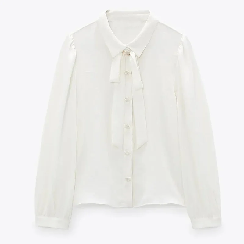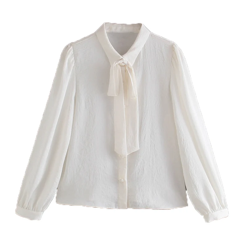 Новая женская блузка Xitimeao на весну и осень, элегантная белая офисная рубашка с длинным рукавом, Женские однотонные топы, белая рубашка с бантом
