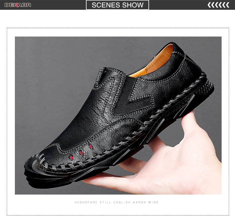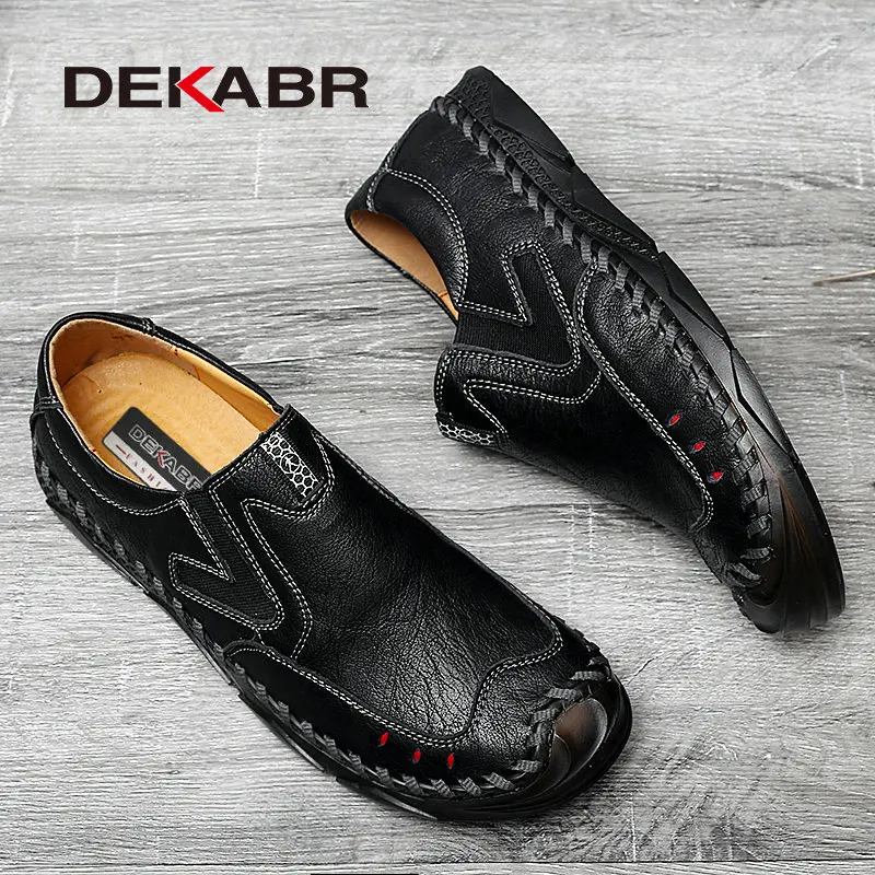 DEKABR/Мужская обувь из натуральной кожи; Дышащая модная мягкая летняя повседневная обувь; Брендовые мокасины ручной работы; Цвет Черный; Большой размер 47