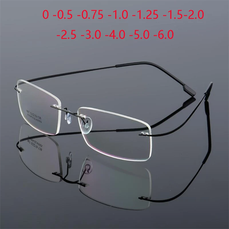 Очки для близорукости мужские из титанового сплава, Суперэластичные, без оправы, металлические прямоугольные очки с минусовыми линзами 0-0,5-0,75 до-6