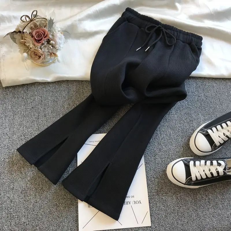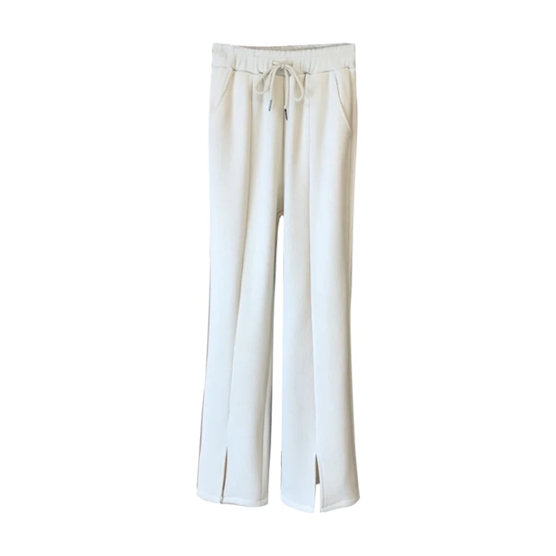 Брюки-клеш Женские эластичные с завышенной талией и разрезом, однотонные