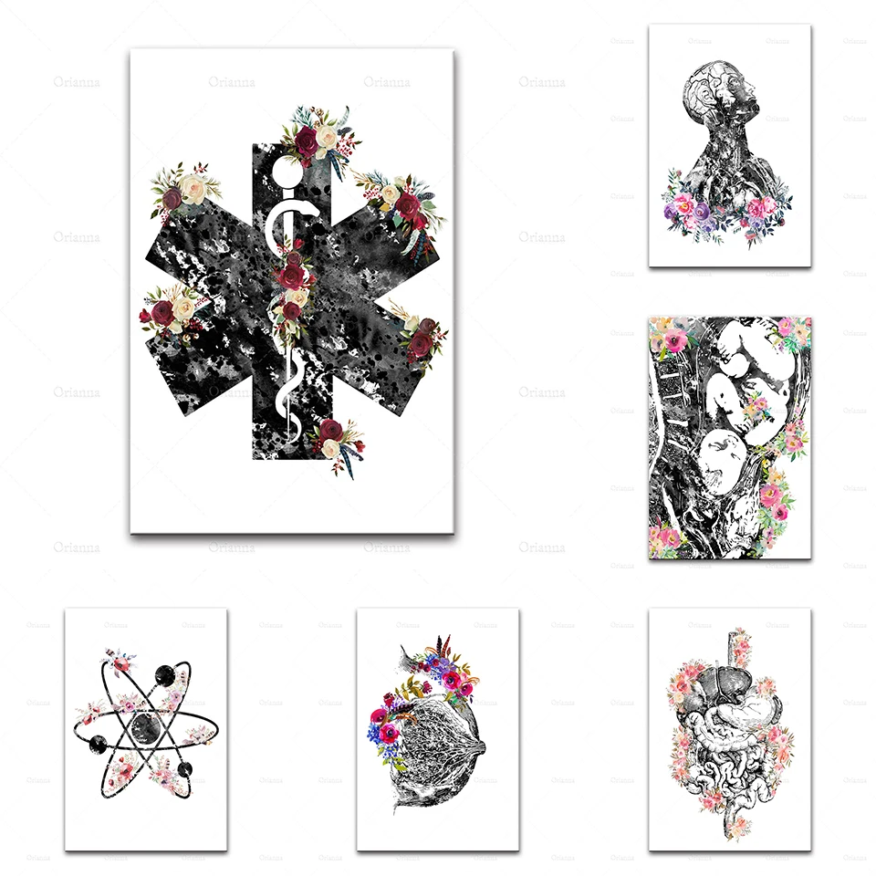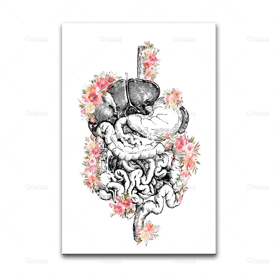 Медицинская Настенная картина, винтажный постер с изображением анатомии человека, скелета, органов, мышц, холст, обучение телу