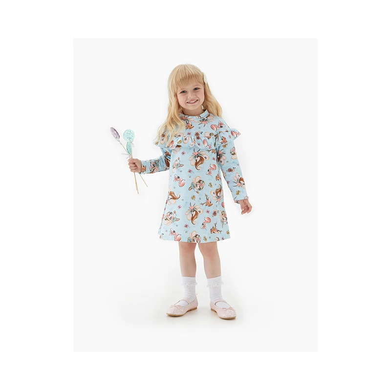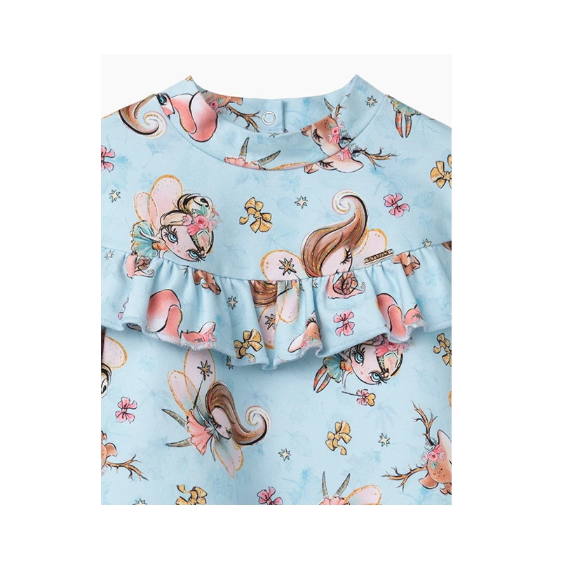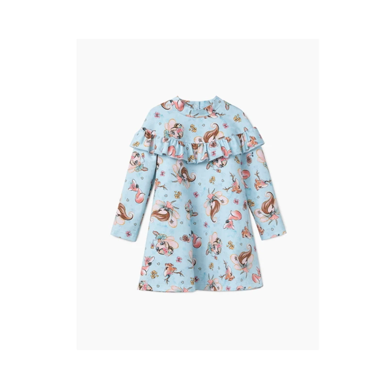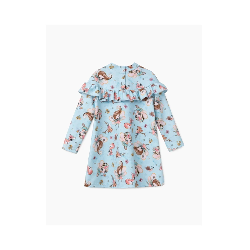 С длинным рукавом и декоративной оборка по линии плечевого пояса спереди и сзади.