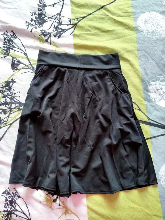 Продукт в целом хороший, но он короче, чем на картинке. Я не очень высокий, и юбка достигает середины бедра, а не колена, как на картинке, которую я хотел. Остальное в порядке. Карманы всегда замечательные в юбках.