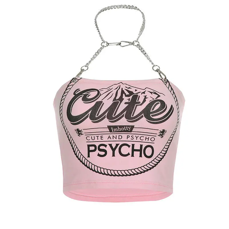 Женский короткий топ QWEEK Y2K, готический розовый топ без рукавов, с принтом цепей, для клуба, на лето, 2021