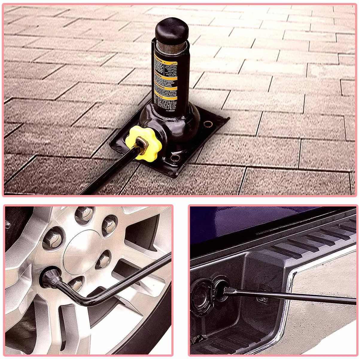 Особенности:-Высокая твердость и прочность, сильное кручение.-Краска против окисления, более прочная.-Удобный чехол для хранения, чтобы держать его вместе и организовывать.-Ослабьте или затяните гайки на шинах.-Опустите запасную шину из-под транспортного средства.-Поднимите домкрат, который поставляется с вашим автомобилем. (Примечание: Джек не входит в комплект)-Три полюса могут быть соединены, и Длина соединительного стержня отличается для каждой модели. Он расположен на квадратном отверстии l-образного ключа.Посылка включает в себя:1 гаечный ключ для шин1x T расширение2x сегменты расширения1x чехол для переноски из искусственной кожи