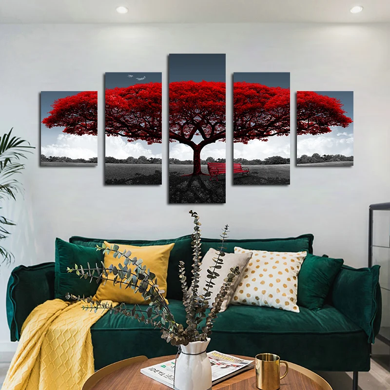 Без рамки 5 шт. абстрактная модульная дерево живопись на холсте Печ...