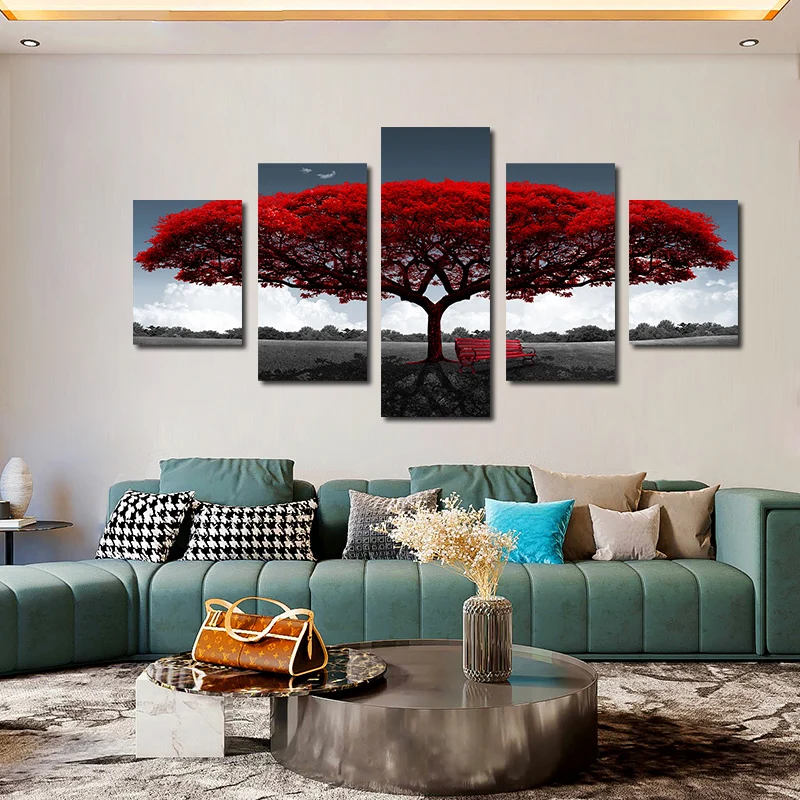 Абстрактные красные холсты без рамки, 5 шт., художественная живопись, Настенные Декоративные плакаты, картины для гостиной, отеля, домашнего декора