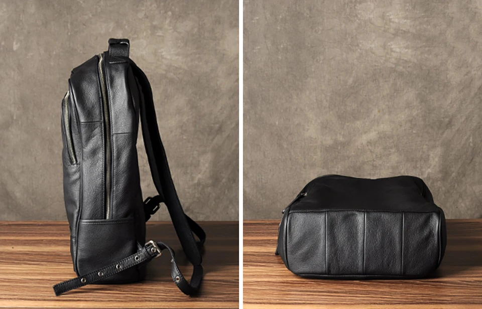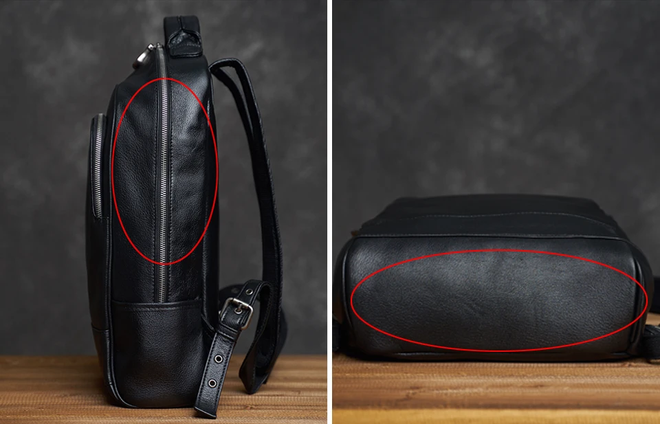 1. После обновления: внешняя поверхность задней части выполнена из цельного куска кожи, дизайн сумки на молнии отменен, потому что есть отзывы клиентов, что застежка-молния ударит по спине человека и вызовет дискомфорт2. После обновления: нижняя часть рюкзака изготовлена из цельной кожи3. После обновления: нижняя часть рюкзака изготовлена из цельной кожи4. После обновления: боковая часть рюкзака изготовлена из целой кожи5. Усовершенствованный рюкзак более прочный и красивый