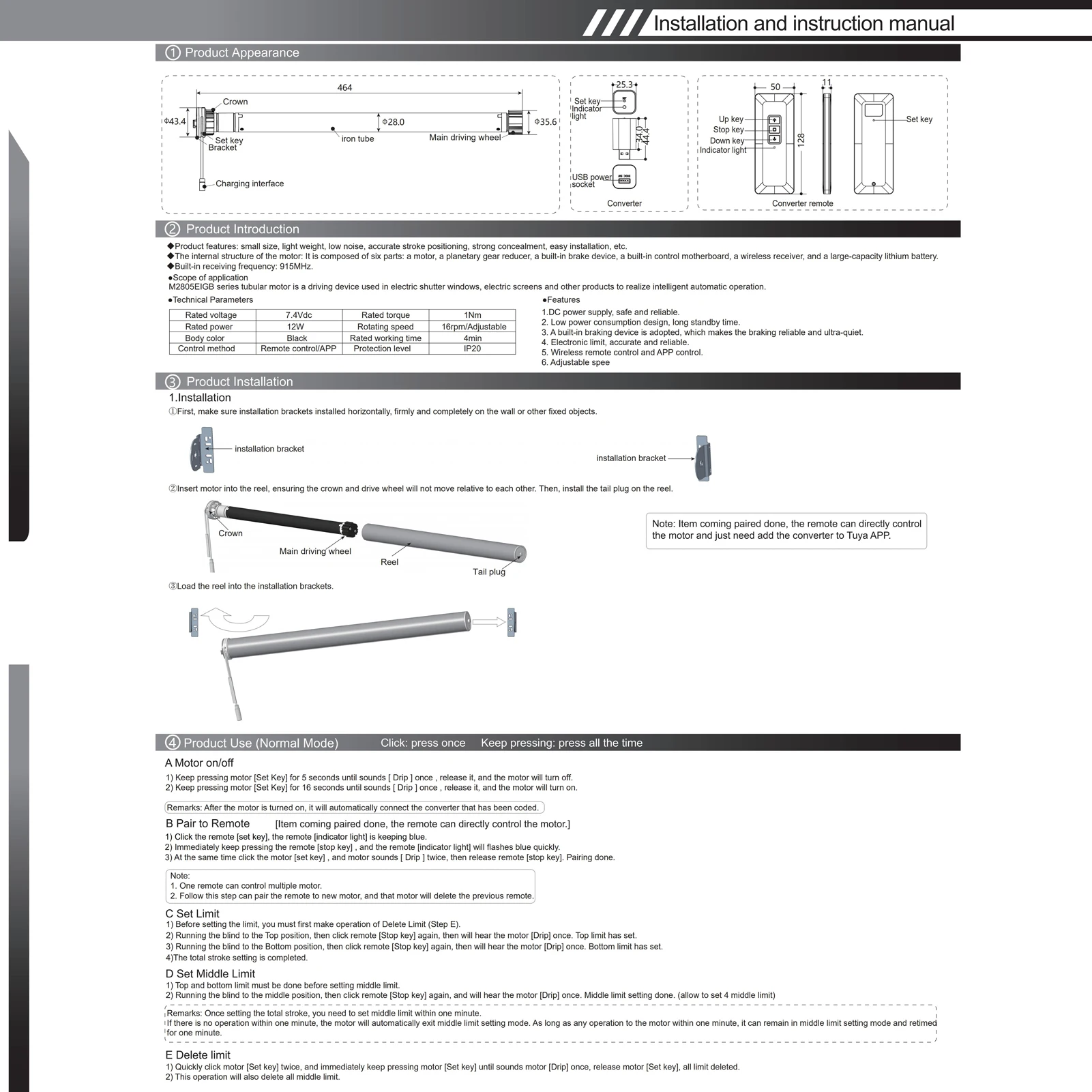 С помощью этого продукта вам больше не нужно приподнимать занавеску вручную, иногда задерживая руки, вам не удобно управлять занавеской. С помощью этого продукта вы можете открывать или закрывать шторы через мобильный телефон, пульт дистанционного управления или даже голос. Им очень легко управлять, давайте попробуем.Особенности:С помощью этого мотора для штор вы можете управлять шторкой через приложение Tuya и голосовым управлением, подключившись к какому-то умному голосовому помощнику, вам не нужно тянуть мотор руками, это может сэкономить ваше время.Когда вы находитесь вдали от дома с помощью этого мотора для штор и приложения, вы можете управлять шторкой с помощью мобильного телефона, больше не нужно беспокоиться о том, что забудете вовремя открыть или закрыть шторы.Конструкция с низким энергопотреблением, долгое время ожидания, вам не нужно часто заряжать его.Используется встроенное тормозное устройство, что делает торможение надежным и сверхтихим.Скорость регулируется с электронным ограничением, точная и надежная, дает вам лучший опыт использования.Благодаря внешнему Wi-Fi-приемнику, который может снизить потребление двигателя, батарея может работать дольше при полной зарядке.Характеристики:Материал: металлЦвет: черныйНоминальная мощность: 12 ВтНоминальный крутящий момент: 1 НмАккумулятор: 1 * литиевый аккумулятор, 2600 мАч (входит в комплект)Батарея пульта дистанционного управления: 2 батарейки cr2325 (входят в комплект)Скорость вращения: 16 об/мин/регулируемаяНоминальное время работы: 4 минРазмер USB-приемника Wi-Fi: 44,4*25,3*25,3 мм/1,7*1,0 * дюймаРазмер пульта дистанционного управления: 128*50*11 мм/5,0*2,0 * дюймаВес пульта дистанционного управления: 70 г/2,5 унцииРазмер изделия: 464*43,4 мм/18,3 * дюймаВес изделия: 665 г/фунтаПосылка: 510*150*50 мм/20,1*5,9 * 2.0inВес посылка: 1138 г/фунтаУпаковочный лист:1 * двигатель для штор1 * Wi-Fi приемник1 * USB кабель1 * пульт дистанционного управления1 * Руководство пользователя