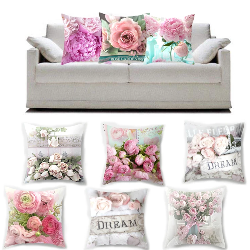 Наволочки для подушек, 45 х45 см, с розовым цветочным принтом, экологичные, домашние, гостиничные, Квадратные наволочки, декоративные наволочки