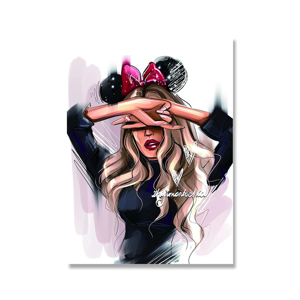 Настенная Картина на холсте Феминистская мода розовая девушка энерг...