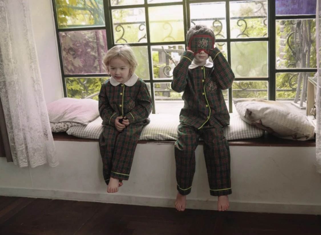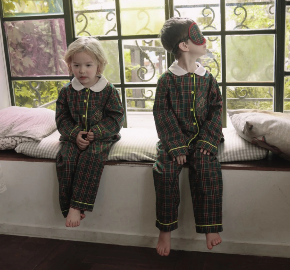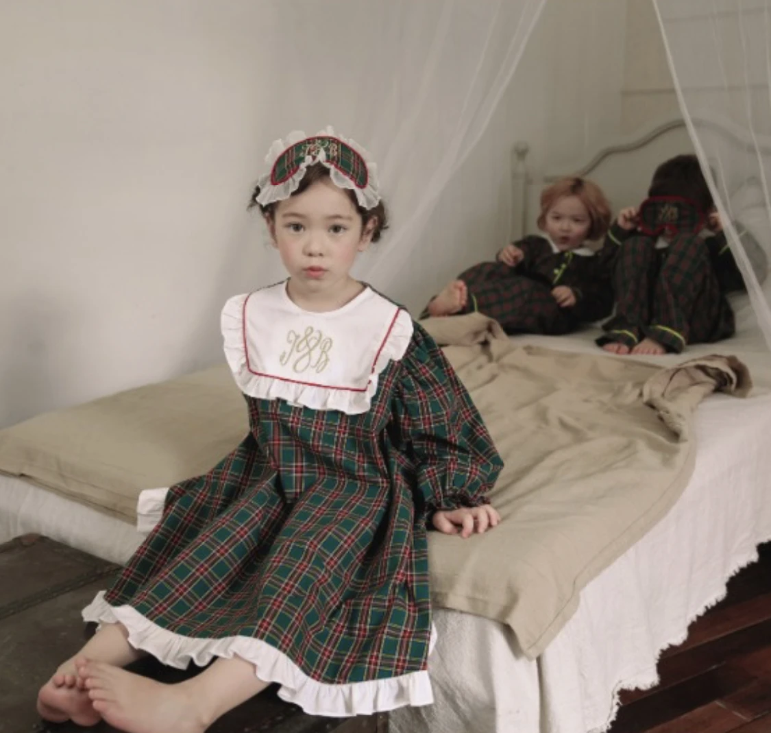 Детские винтажные пижамные комплекты в зеленую клетку с повязкой на глаза, домашняя одежда для сна для малышей, пижамный комплект для девочек и мальчиков, детская одежда