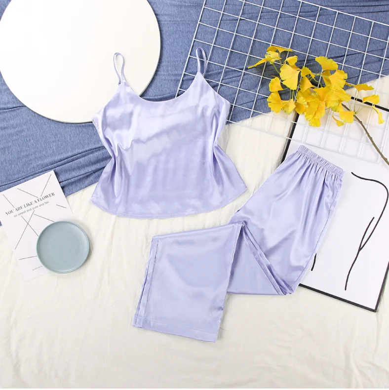 Новая женская пижама шелковые на бретельках с открытой спиной атлас...