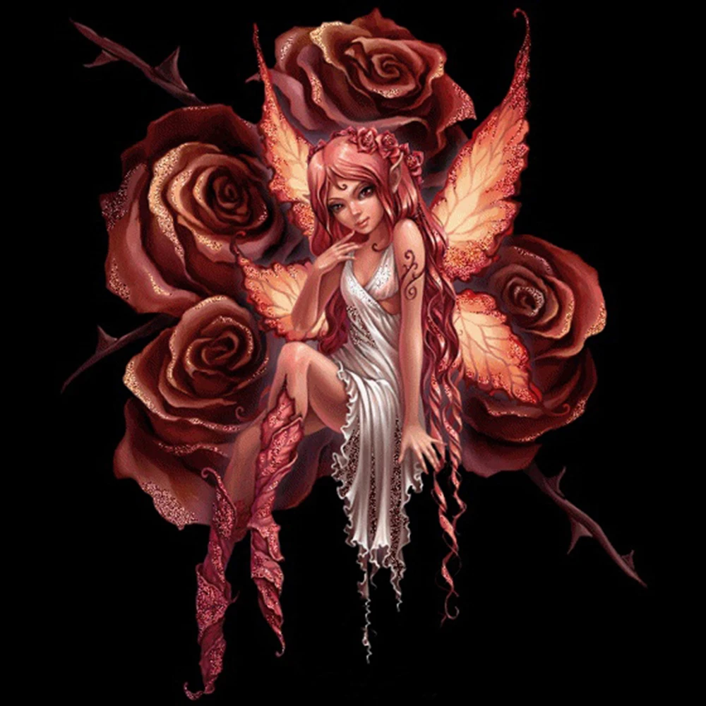 Алмазная 5D картина сделай сам, Цветочная фея, маленькая девочка с крыльями, угловая Алмазная Вышивка крестиком, мозаика, настенная наклейка, подарок