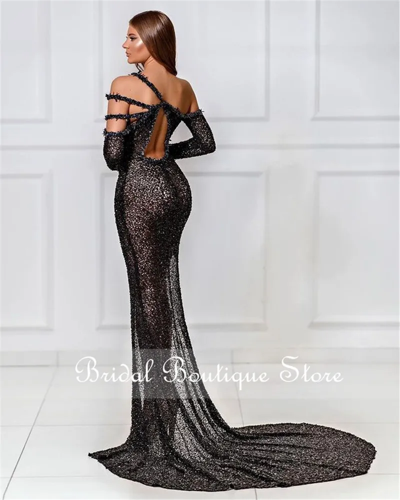Женское вечернее платье макси, расшитое бисером, с открытыми плечами, с длинными рукавами, разрезом по бокам, платье в нигерийском стиле для выпускного вечера