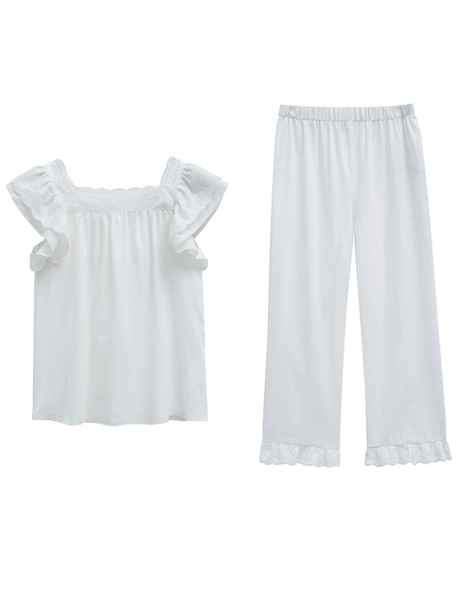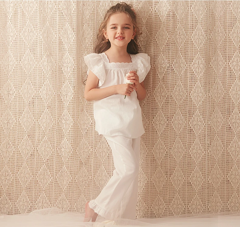 Пижама с отложным воротником для девочек, летняя белая плиссированн...