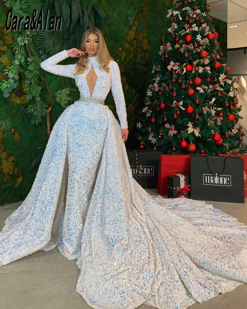 Вечернее платье из Дубая, с длинными рукавами и бисером, празднично...
