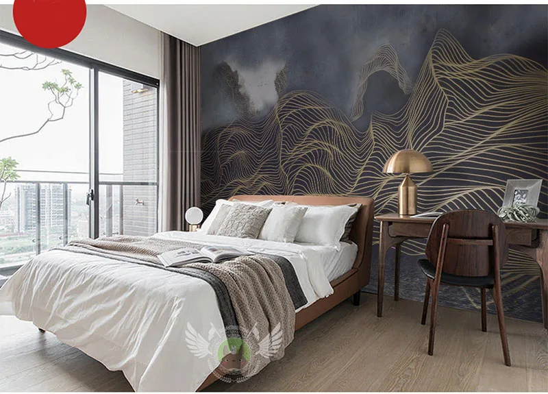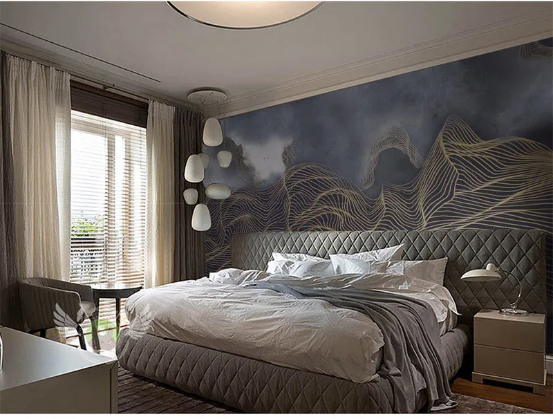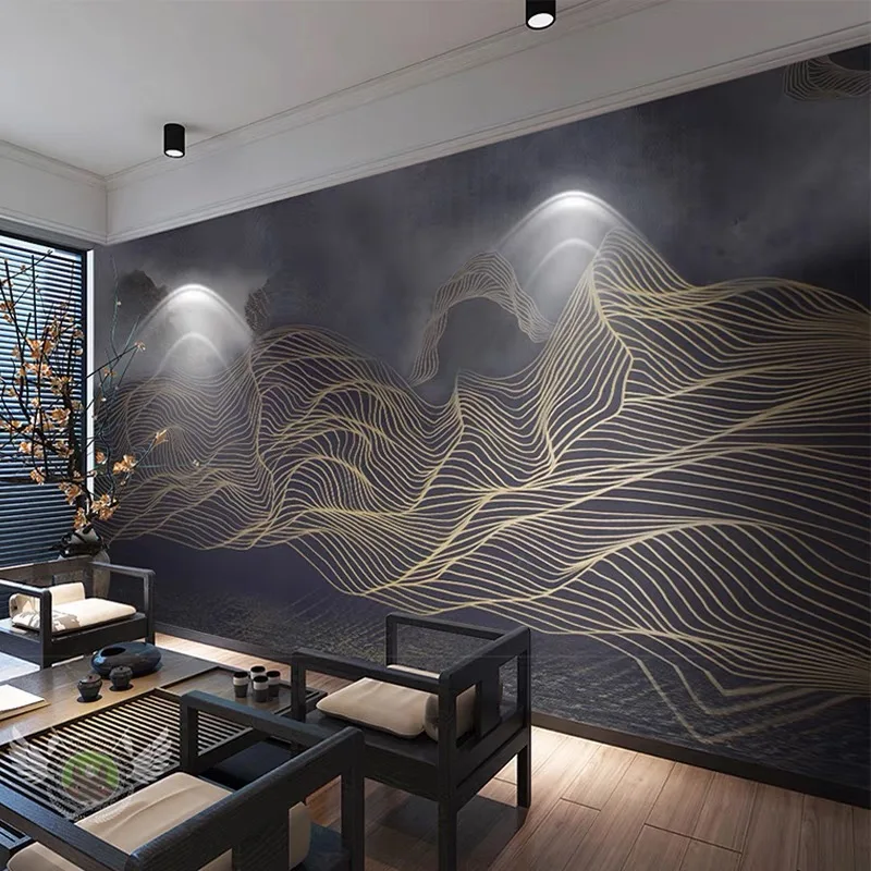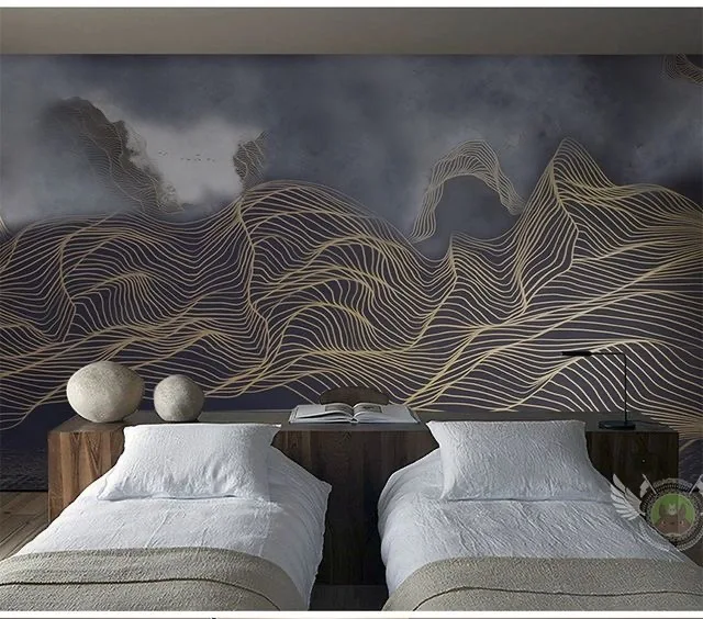 Bacaz абстрактные линии светильник роскошные горы обои фрески туман джунгли 3d пейзаж настенная бумага Съемный Фон