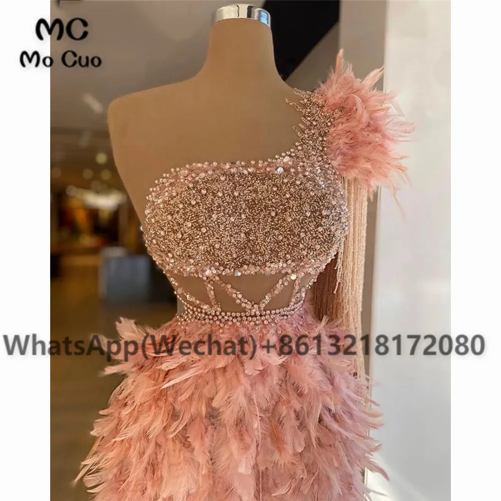 Роскошные вечерние платья с перьями на одно плечо 2021, африканская Роба De Soiree, вечернее платье для выпускного вечера для женщин