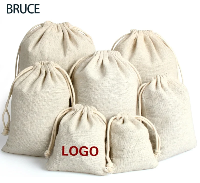 Подарочный пакет из хлопка и льна, 20 шт., упаковка для ювелирных изделий по индивидуальному заказу, мешочек для макияжа, свадебной вечеринки, сумка для хранения конфет саше с принтом логотипа