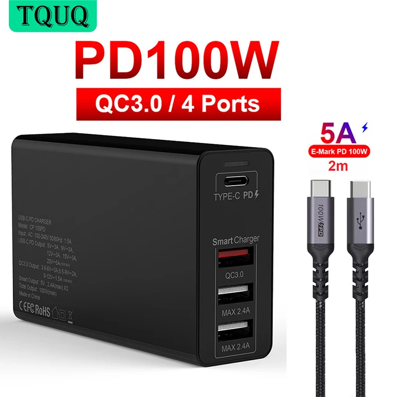 TQUQ 100 Вт 4 порта зарядное устройство USB C адаптер питания PD 100 Вт/65 Вт/45 Вт/18 Вт QC3.0/PPS Быстрая зарядка для USB-C ноутбуков MacBook Pro iPhone 12