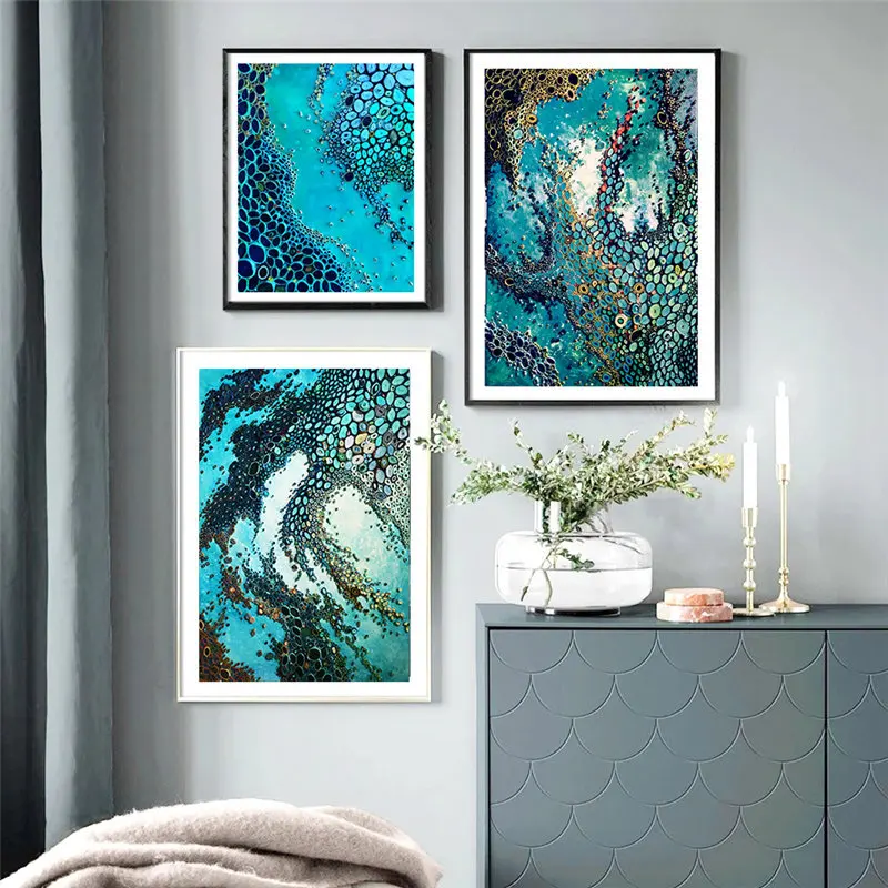 Абстрактная Настенная картина цвета синего океана, настенный плакат на холсте и печать, современное художественное изображение, современное нордическое украшение для дома и комнаты