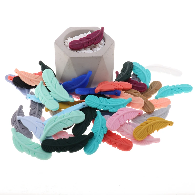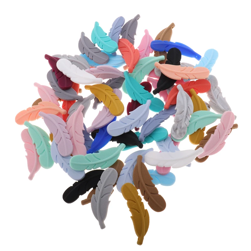 10 шт. Силиконовые бусины перо пищевые силиконовые прорезыватели для прорезывания зубов детские бусины для прорезывания зубов DIY детская соска цепочки и ожерелья прорезывания зубов игрушки BPA бесплатно