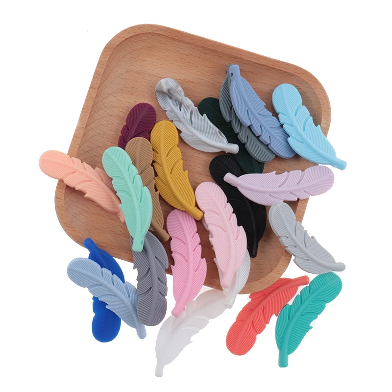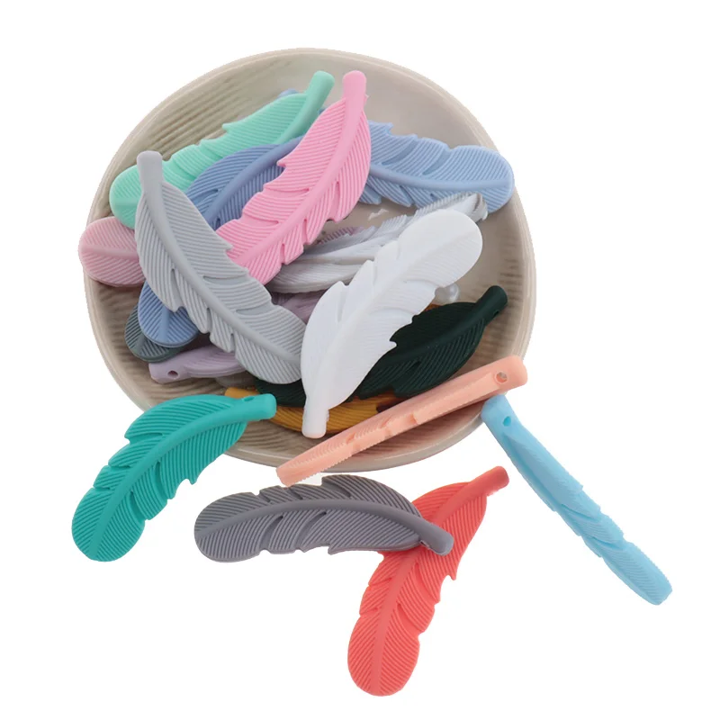 50 шт перо силиконовый кулон Прорезыватель бусины для ребенка силиконовые ожерелье цвет силиконовые бусины BPA бесплатно детские игрушки