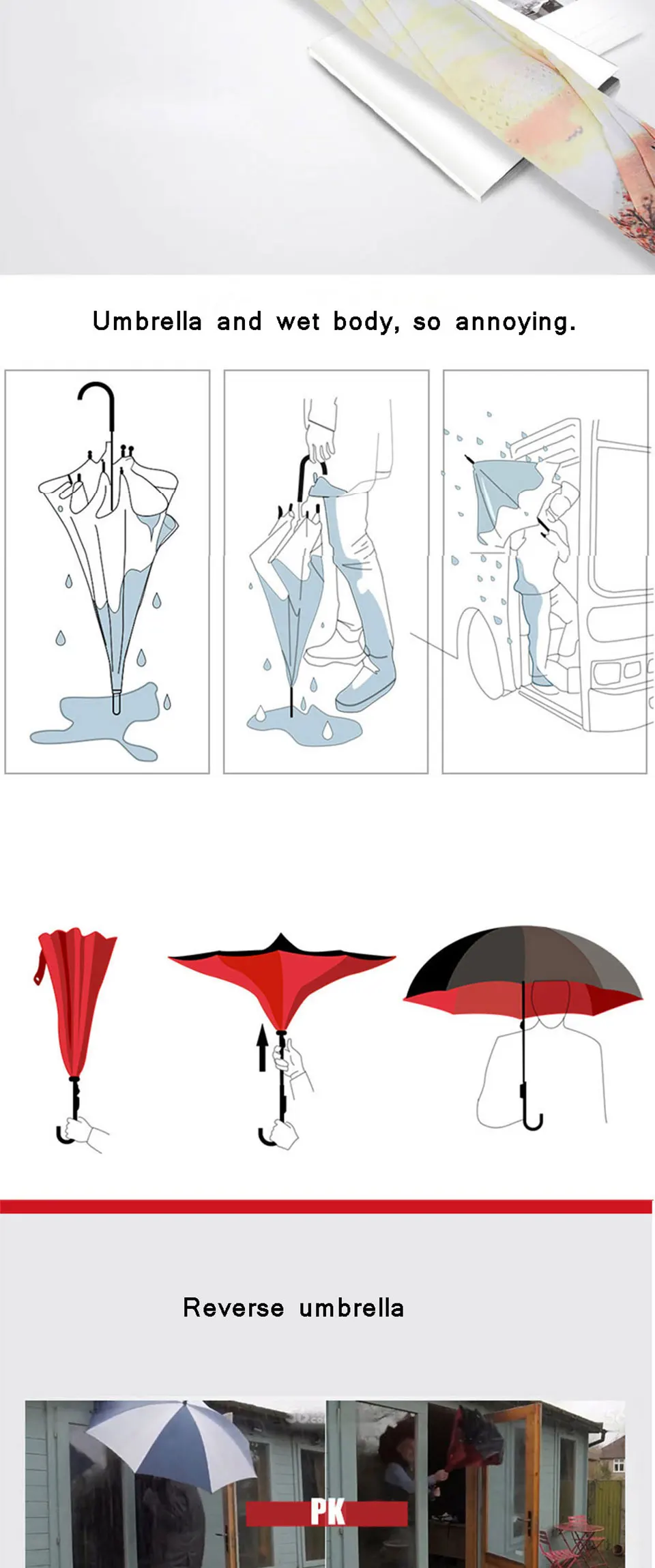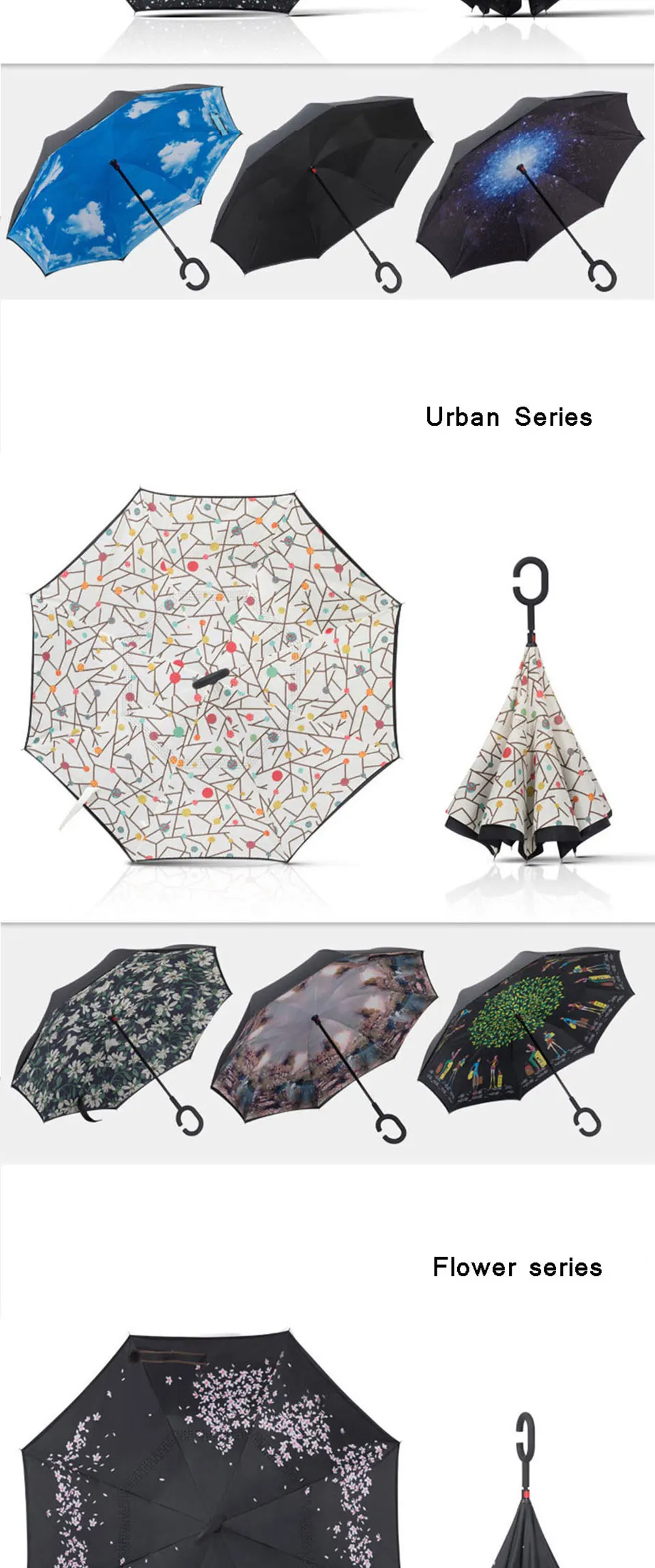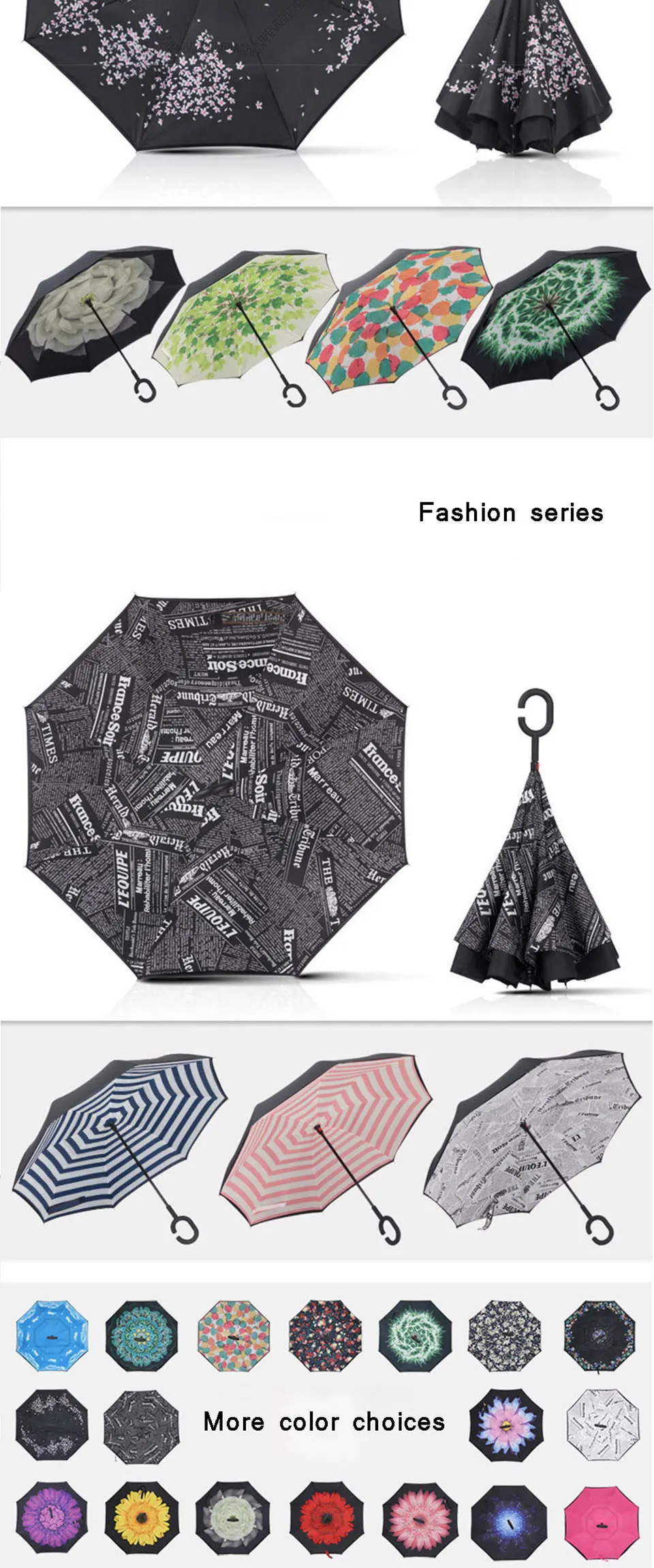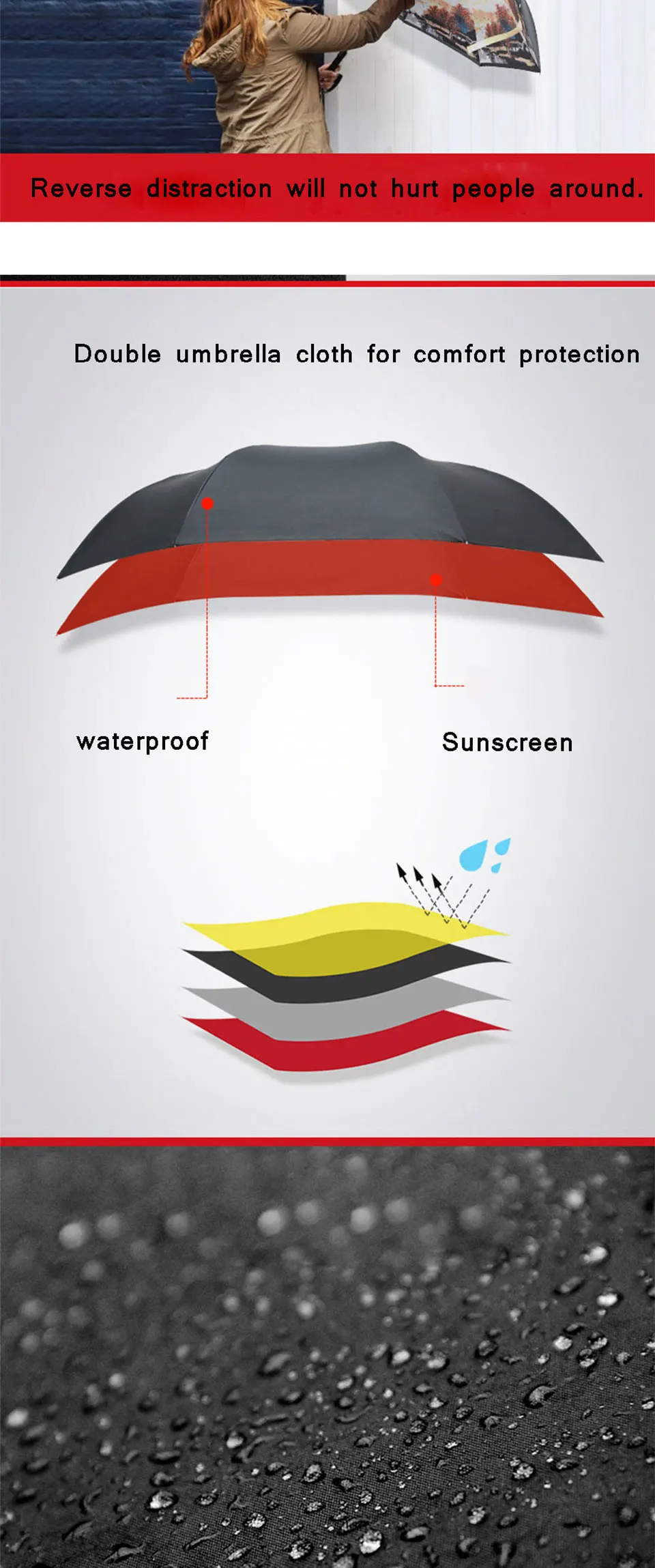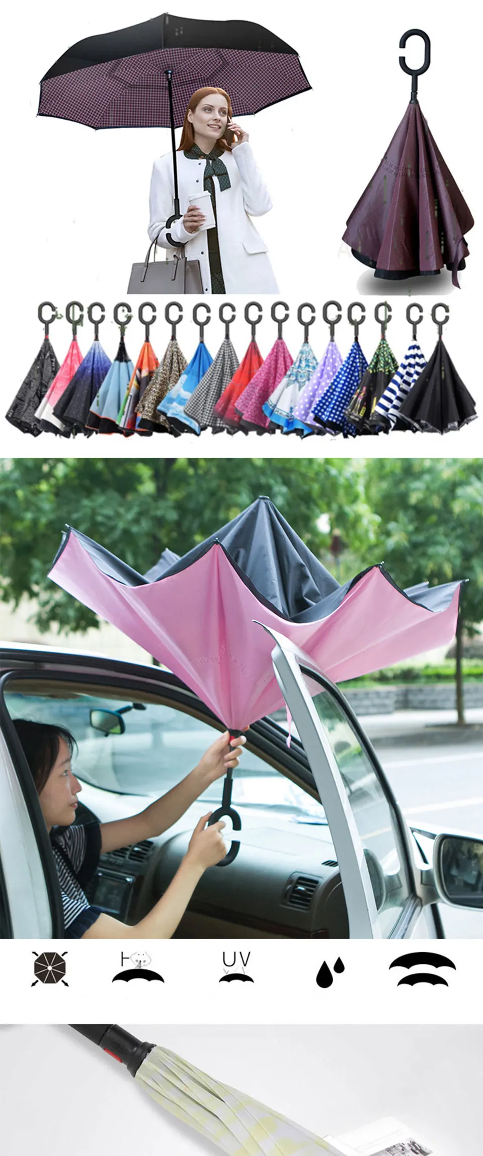 2021 складной двухслойный перевернутый Зонт с длинным хвостовиком, ветрозащитный обратный C-образный крюк, мужской зонт для гольфа, Обратные зонты для женщин