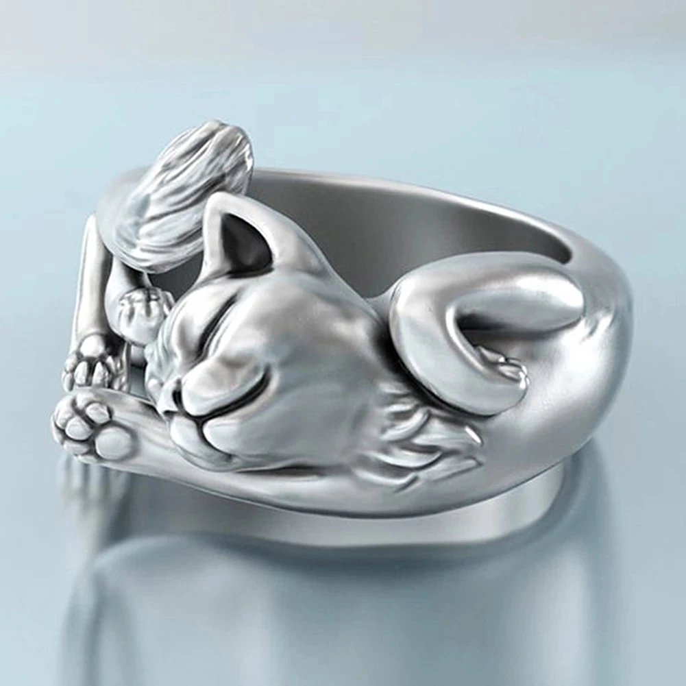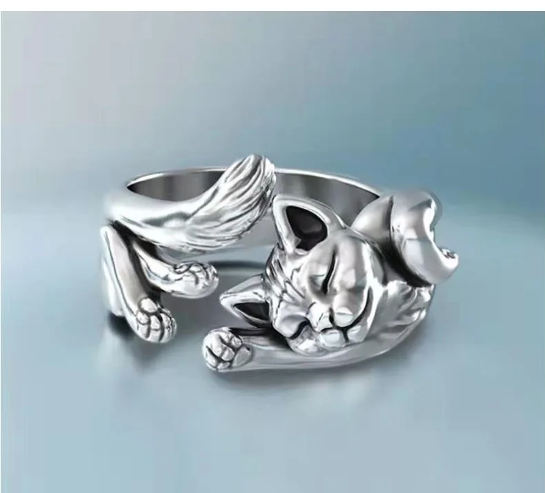Модные открытые кольца в стиле ретро с маленьким котом Европейская ...