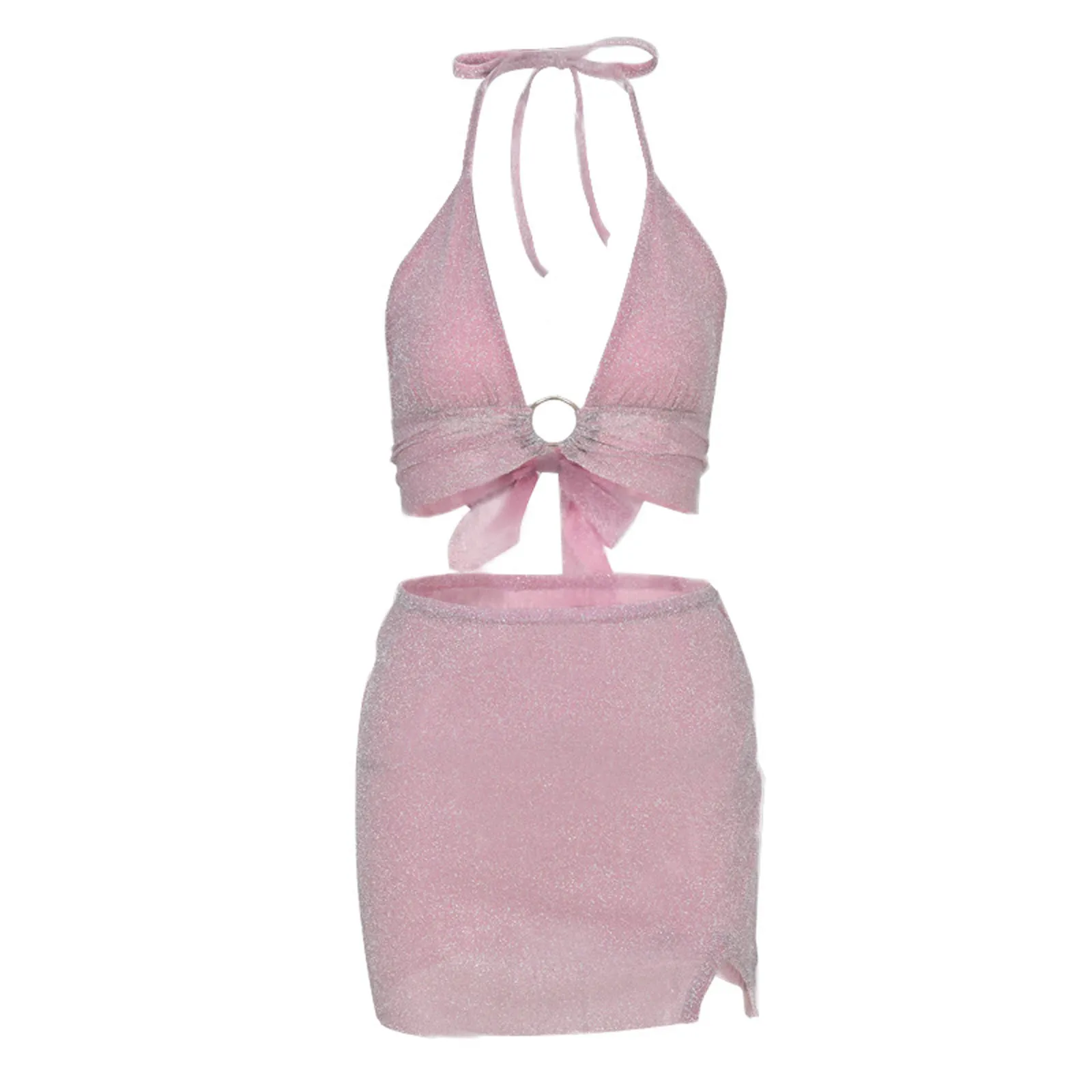 Женский комплект из юбки и юбки, розовый комплект из двух предметов...